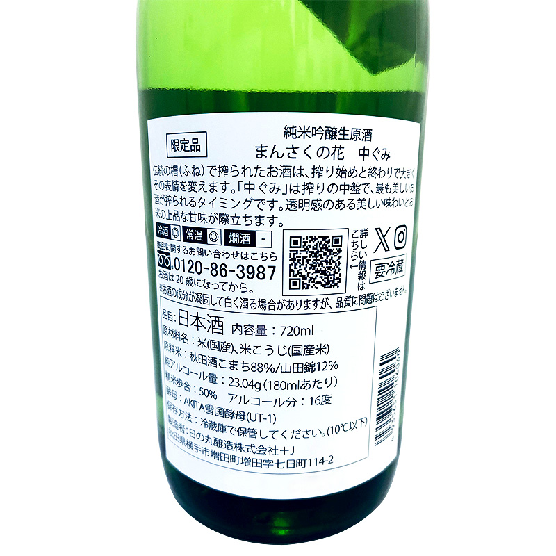 純米吟醸生原酒 まんさくの花 責めどり 720ml *純米吟醸を搾るタイミング別に取り分けた「荒・中・責」シリーズの責めどりです。