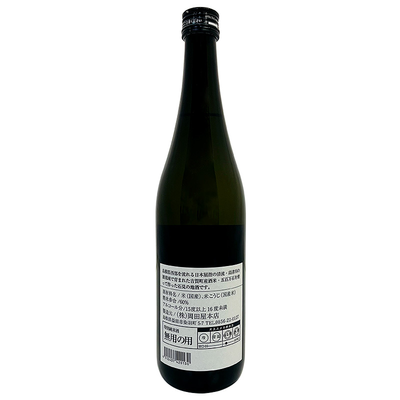 純米大吟醸 無用の用 720ml *島根県産「五百万石」を使用した純米大吟醸。香り控えめでスッキリとした、やや辛口の味わい。
