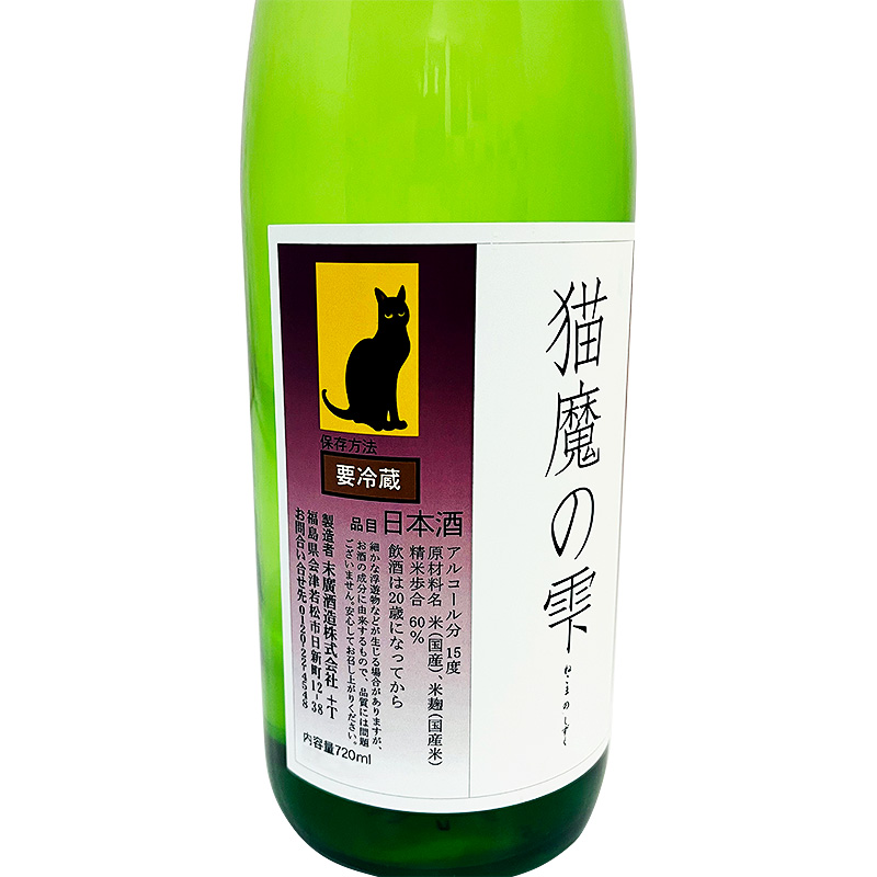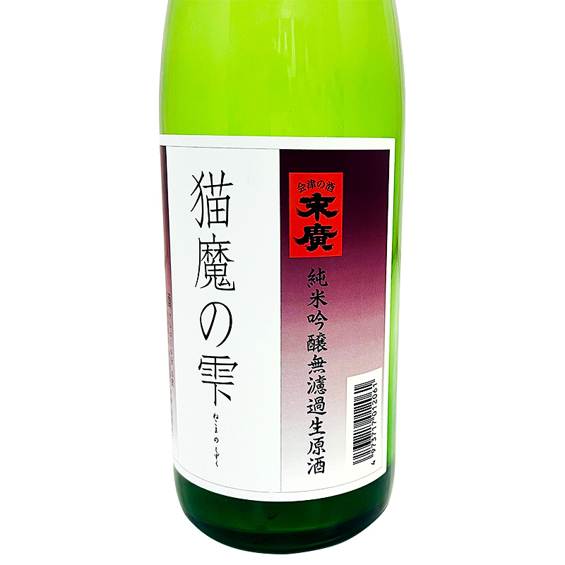 純米吟醸 無濾過生原酒 猫魔の雫 1800ml *リンゴ酸多生産酵母を用いることによる軽やかな酸味が特徴で、フレッシュな果実味と穏やかな甘みとの調和は食中酒でも抜群のお酒となっています。